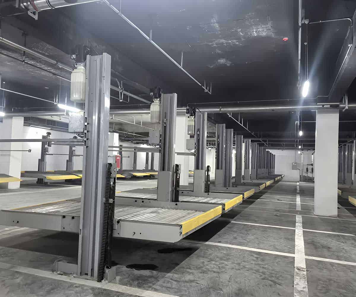 2.住宅小区:在高密度居民区,土地有限,为了能为住户提供更多的停车位,2柱立体停车位成为了理想选择。
